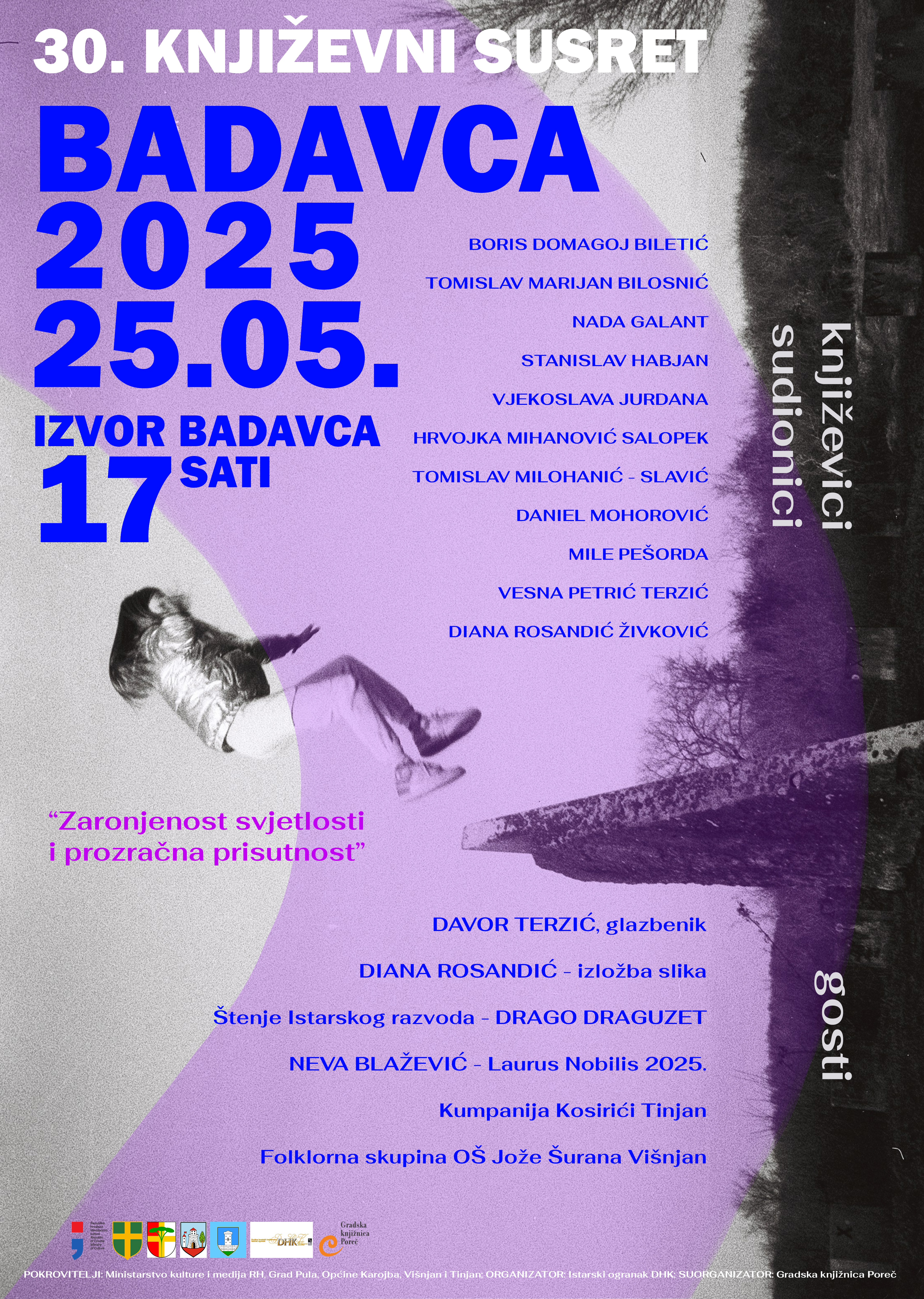 U nedjelju 25. svibnja 2025. godine, s početkom u 17 sati, na izvoru žive vode Badavca kraj Rapavela održat će se 30. KNJIŽEVNI SUSRET BADAVCA pod geslom “Zaronjenost svjetlosti i prozračna prisutnost”.