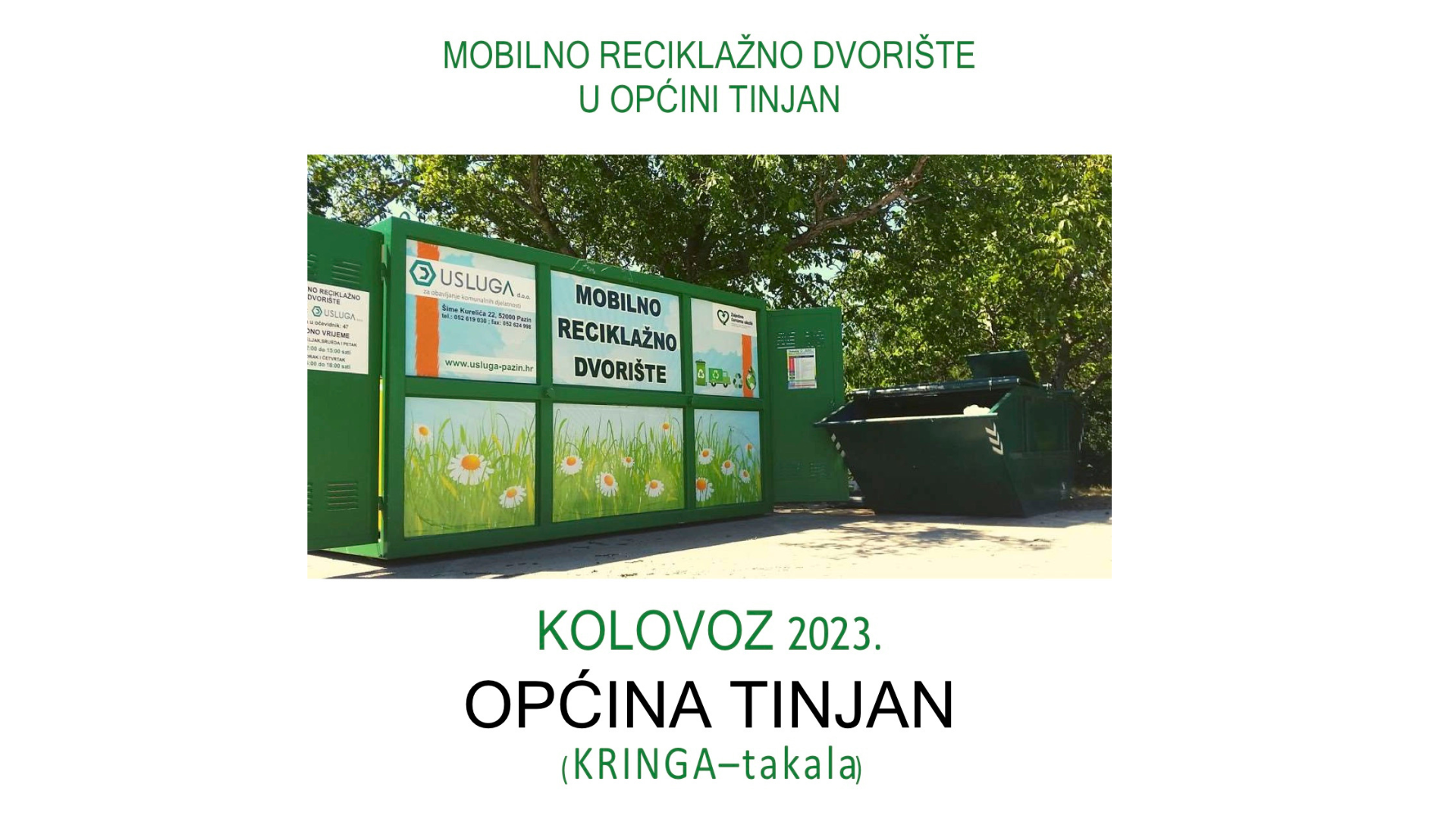 OBAVIJEST - Mobilno reciklažno dvorište u Općini Tinjan