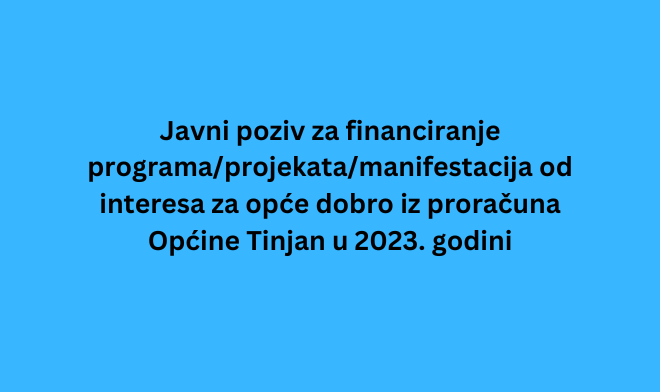 Javni poziv za financiranje programa/projekata/manifestacija od interesa za opće dobro iz proračuna Općine Tinjan u 2023. godini