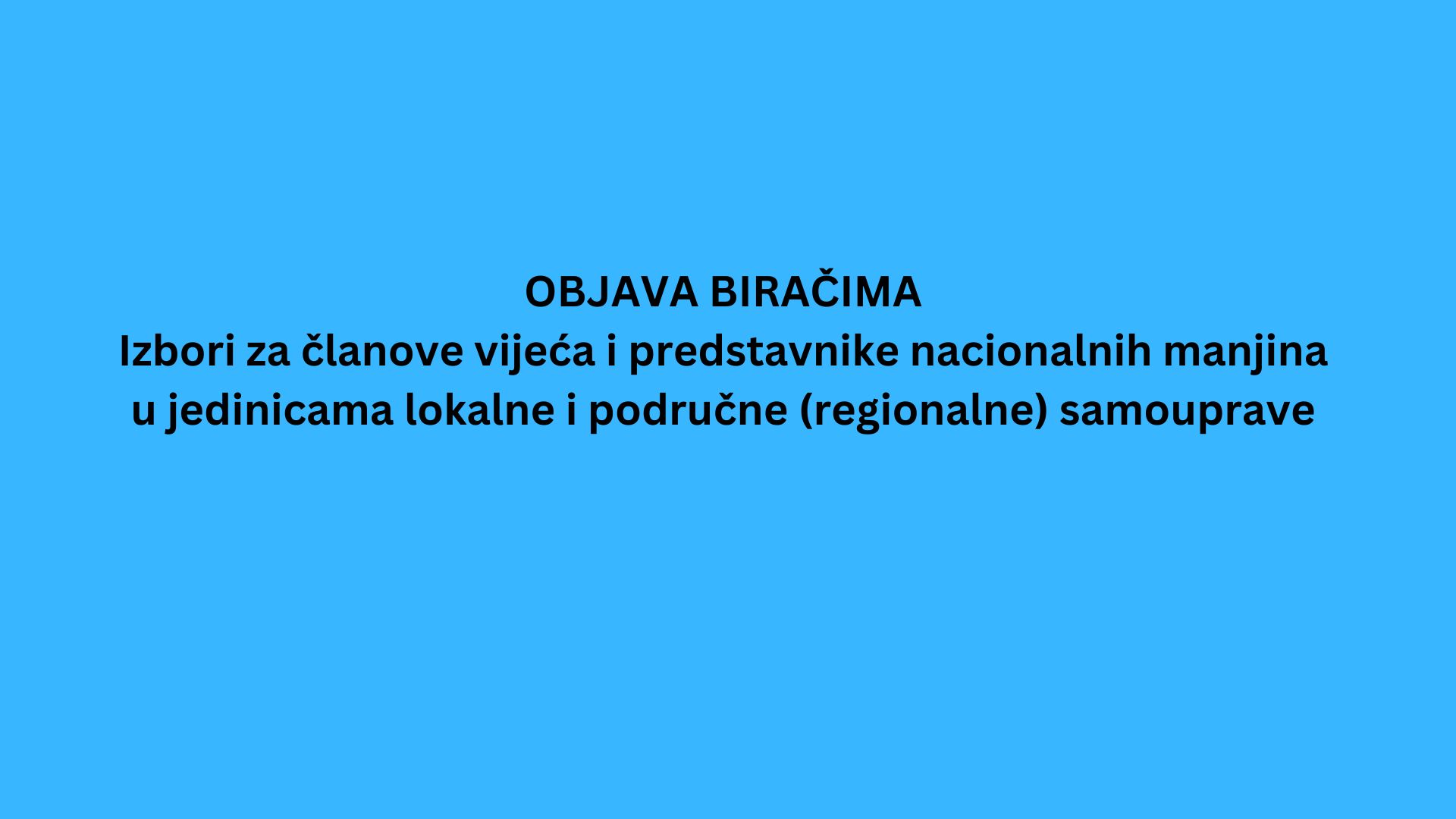 OBJAVA BIRAČIMA Izbori za članove vijeća i predstavnike nacionalnih manjina u jedinicama lokalne i područne (regionalne) samouprave