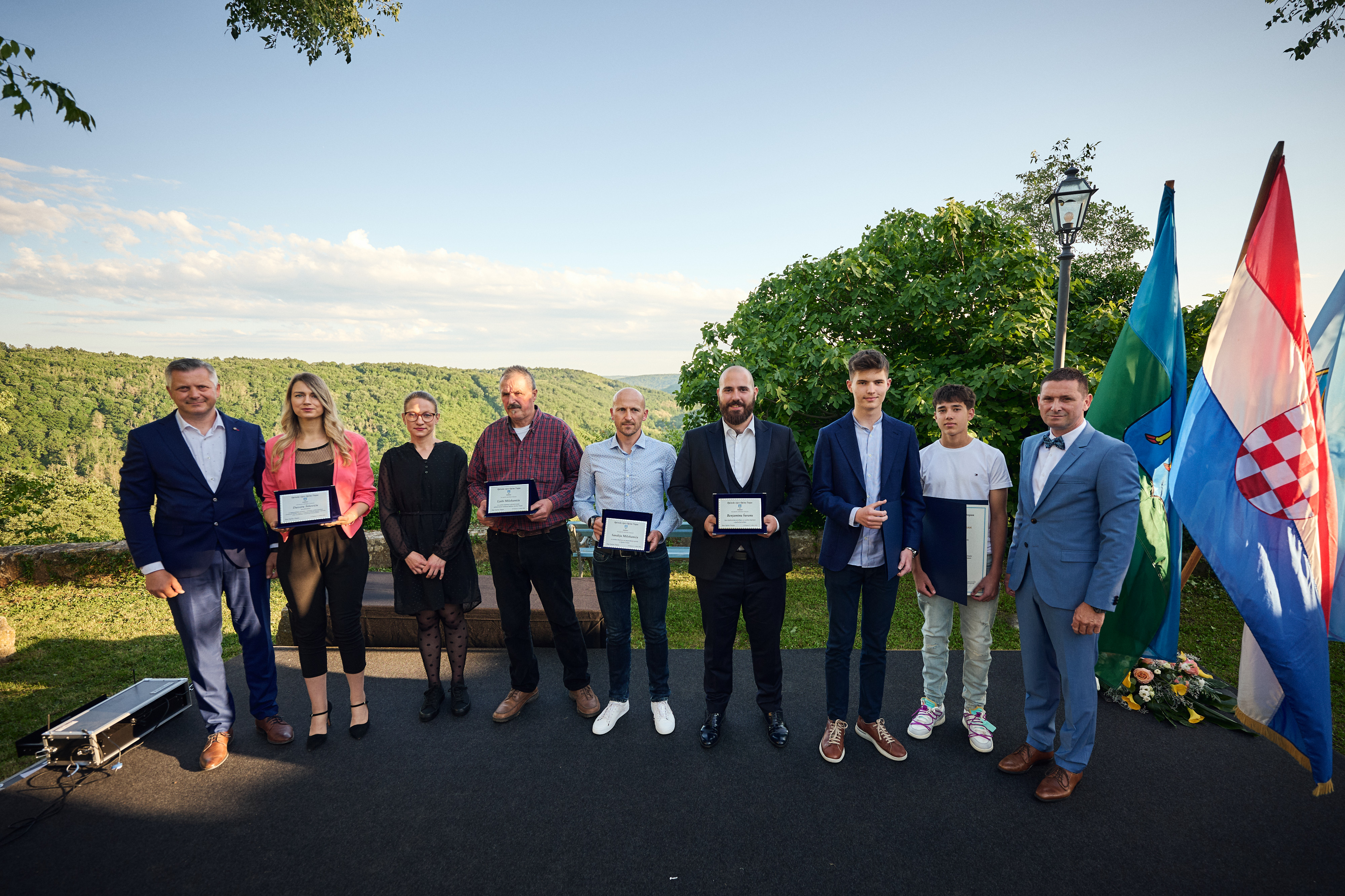 Prvu od tri plakete općinsko vijeće odlučilo je dodijeliti Benjaminu Šuranu, 23-godišnjem talentiranom opernom pjevaču koji je stekao široko priznanje svojim iznimnim sposobnostima te je dobitnik brojnih nagrada, a plaketu je dobio za osobni doprinos u području kulture. Druga plaketa otišla je u ruke Sandija Milohanića (40), poznatog tinjanskog sportaša kojem su izazov zahtjevne trail utrke, pa je Sandiju plaketa uručena za osobni doprinos na unaprijeđenju sporta u Općini Tinjan. Treću plaketu dobio je 61-godišnji Ljubo Milohanić, dugogodišnji tinjanski pljočkar i predsjednik Pljočkarske udruge "Grota" Tinjan, za osobni doprinos u promoviranju nematerijalne kulturne baštine Općine Tinjan. Naposljetku, povelju Općine Tinjan posthumno je dobio poznati istarski novinar Davor Šišović koji je godinama oduševljavao svojom svestranošću, kao i ljubavlju prema istarskoj tradiciji i običajima te kulturi i književnosti općenito. Plaketu su preuzele njegove kćerke, Valentina Babić i Maja Šišović.