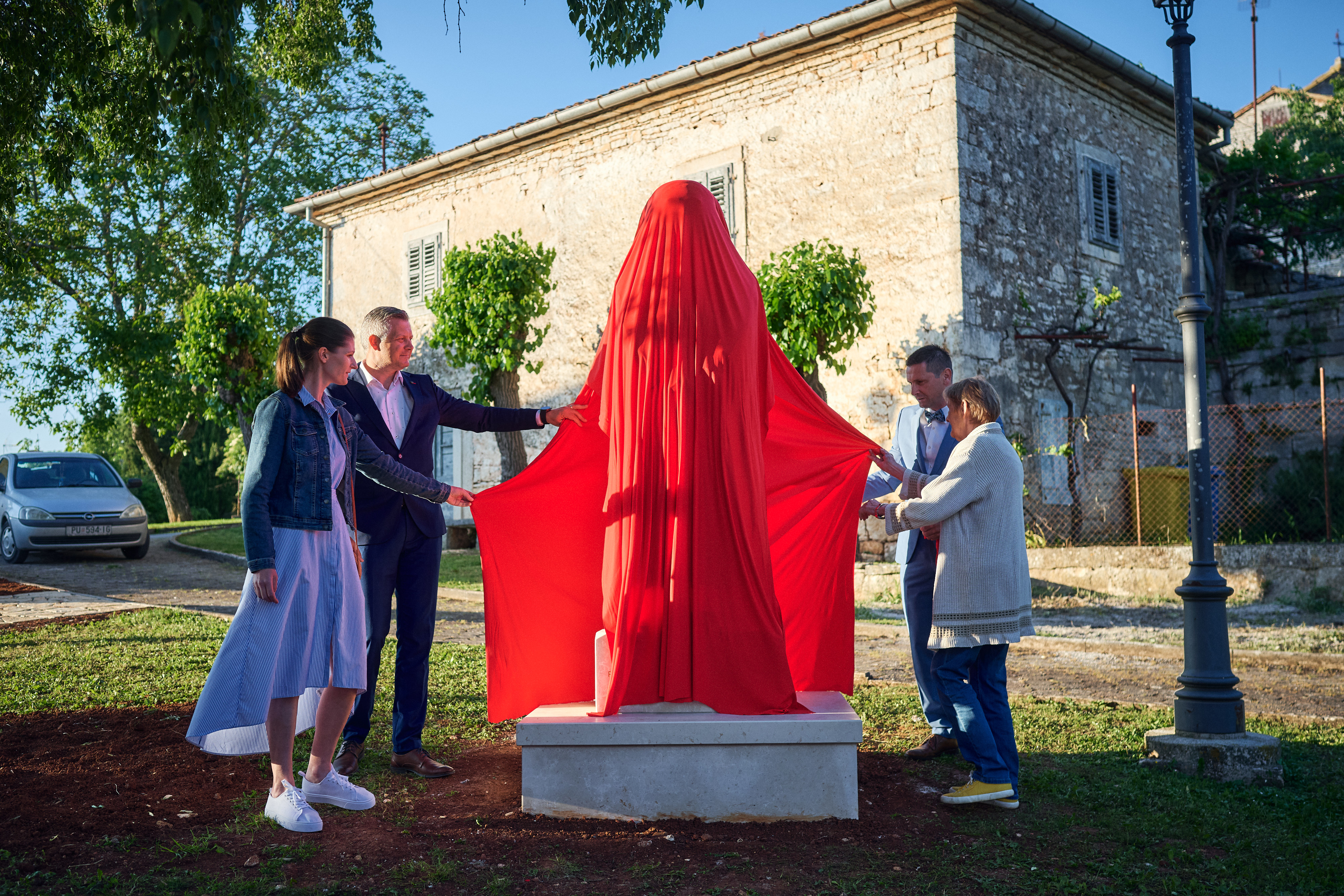Na kraju programa okupljeni su imali priliku uživati u sjajnoj pjevačkoj izvedbi Benjamina Šurana, nakon čega je svečano otkrivena skulptura "Obilježavanje pobune žena Tinjana 1931." postavljene na takozvanom vidikovcu spod ladonja. Skulpturu su otkrile Nina Brečević, predstavnica Udruge Zavičajna zbirka Depiera, te Biserka Momčinović, istaknuta aktivistica za ljudska prava, jedna od osnivačica Ženske mreže Hrvatske i ujedno pokretačica inicijative za trajni podsjetnik na pobunu žena Tinjanštine. Čin otkrivanja skulpture uveličali su i načelnik općine Tinjan Goran Hrvatin, predsjednik općinskog vijeća Igor Antolović i i Elis Lovrić svojom vokalnom izvedbom.