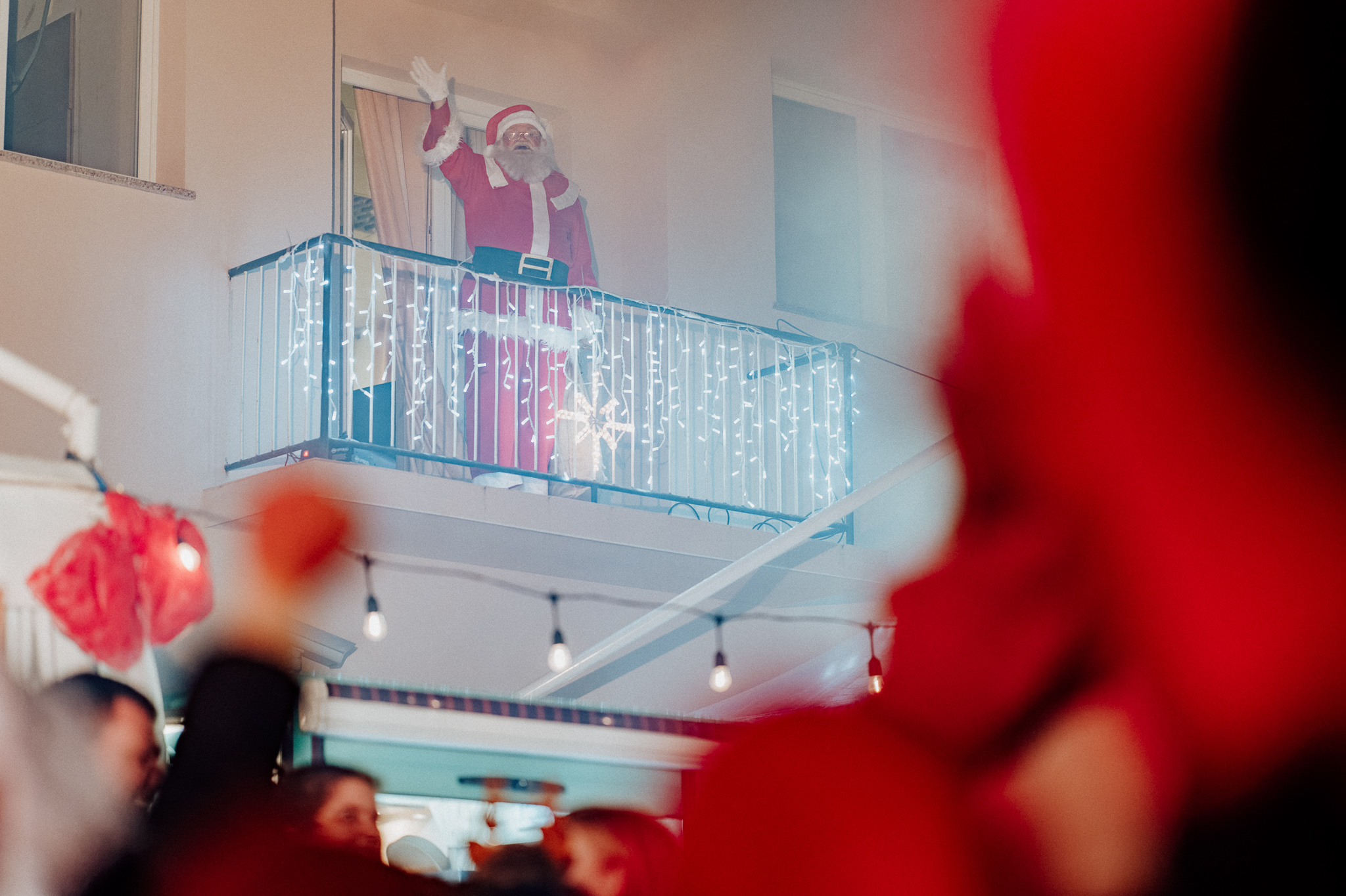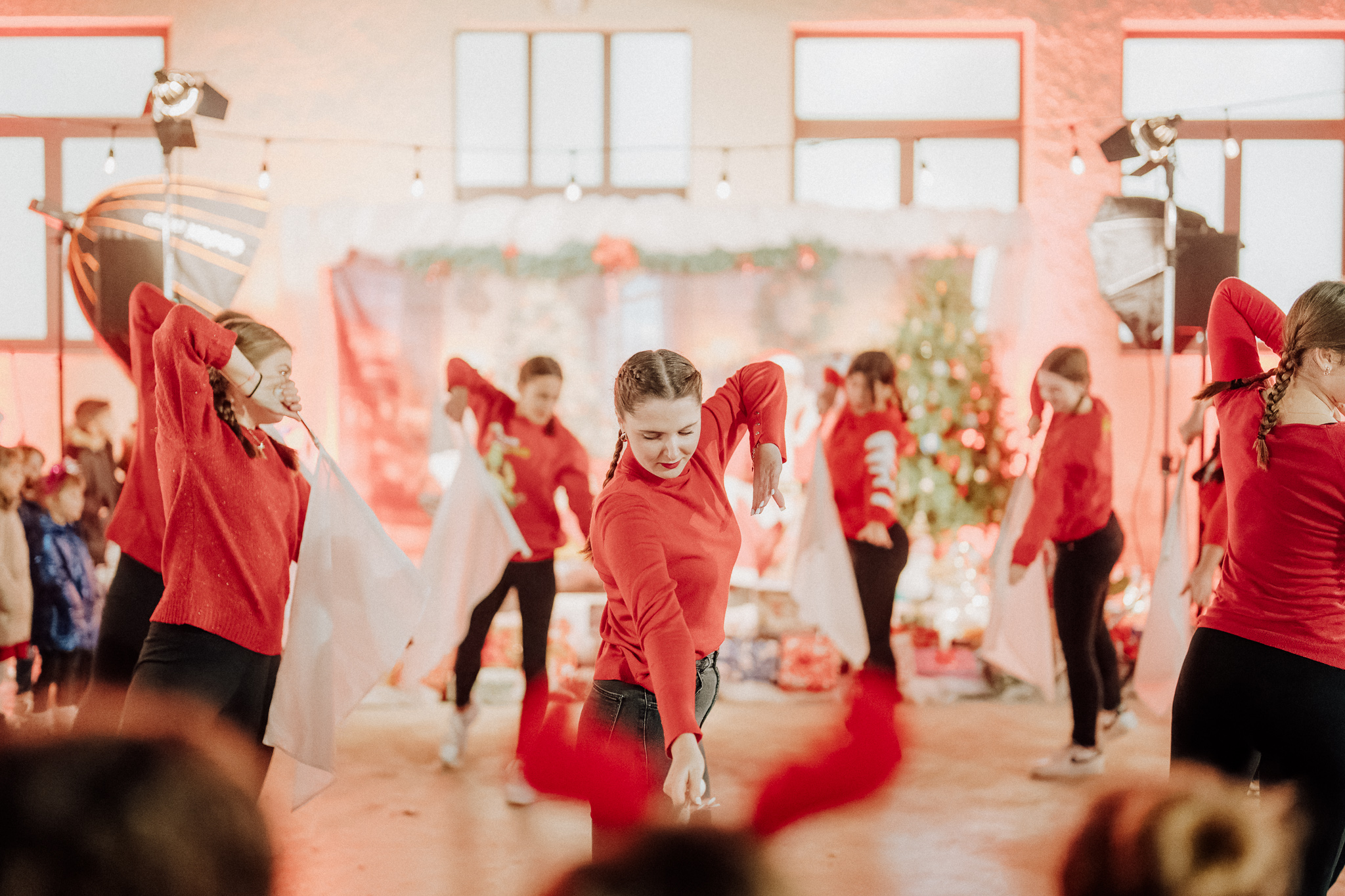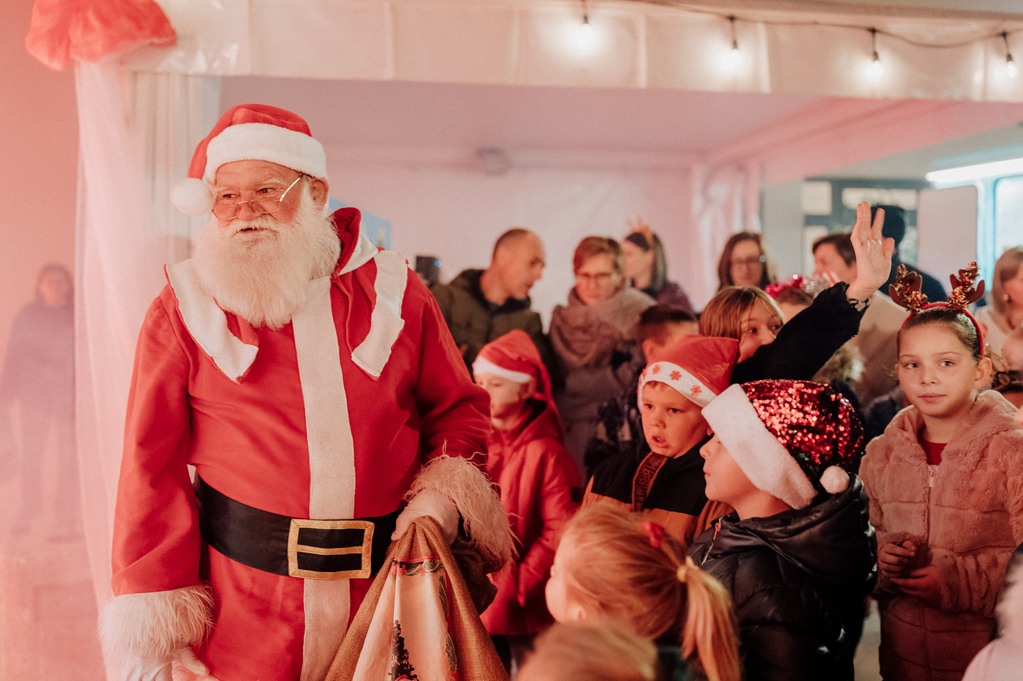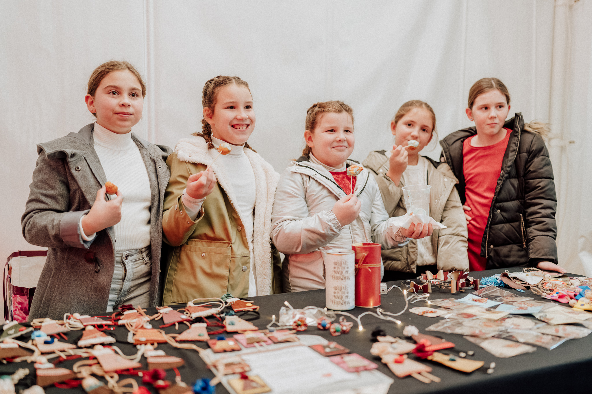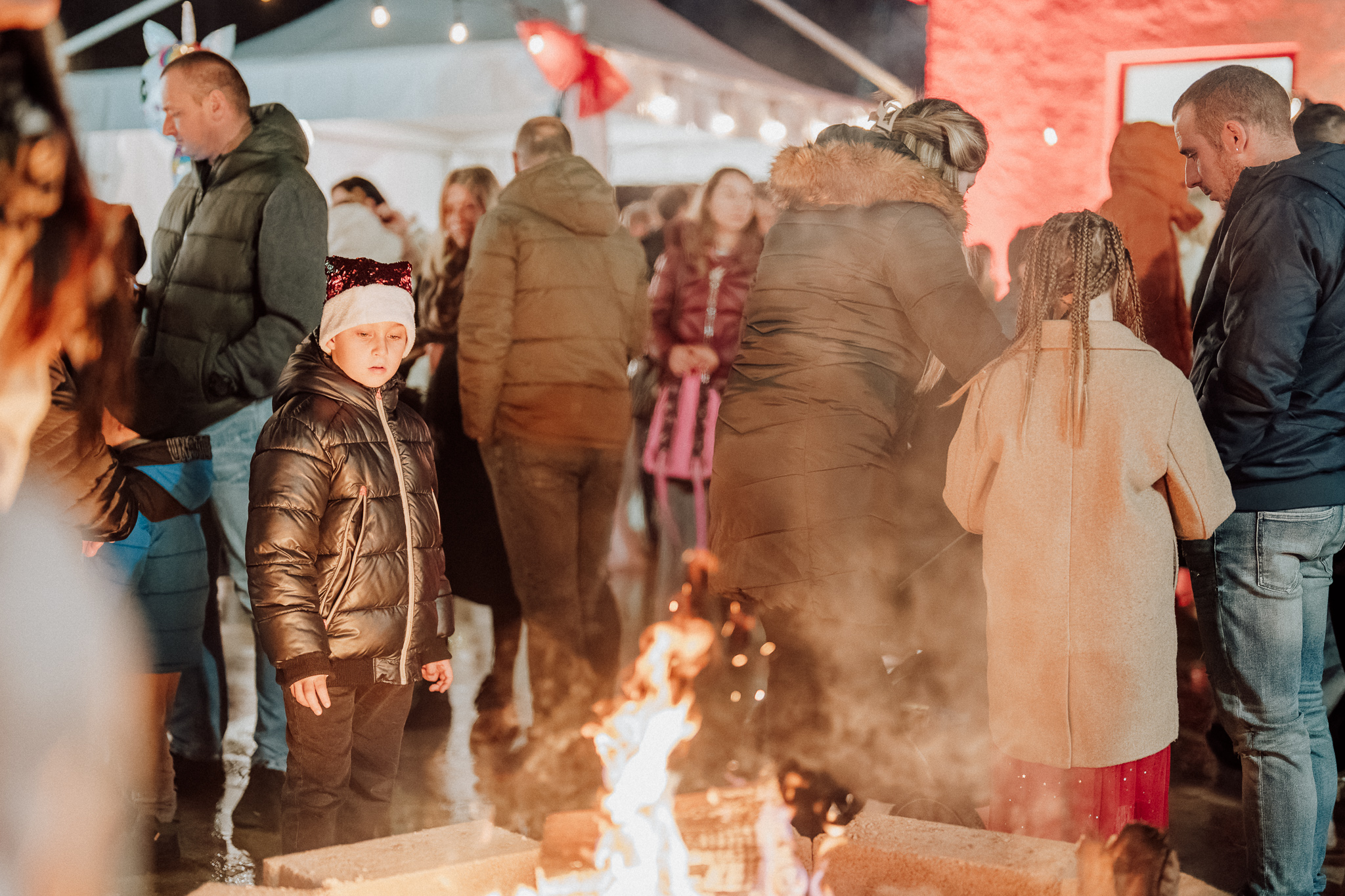 Ispred općinske zgrade otvorio se božićni sajam koji je donio bogatu ponudu prirodnih proizvoda i rukotvorina lokalnih proizvođača. Ovdje su se mogli pronaći jedinstveni blagdanski pokloni, a mnogi su uživali u lokalnim delicijama, poput kuhanog vina, fritula i vafla koji su dodatno ugrijali srca posjetitelja, dok su najmlađi uživali u animaciji i susretu s Djedom Mrazom. Lovačka udruga Golub dodatno je obogatila ponudu pripremivši mirisni lovački gulaš, koji je podijeljen posjetiteljima. Vrhunac večeri obilježile su mažoretkinje Kumpanije Kosirići Tinjan svojim energičnim i elegantnim nastupom. Program je završio podjelom poklona za školarce, uz osmijehe i veselje koje su ispunili svaki kutak Tinjana.