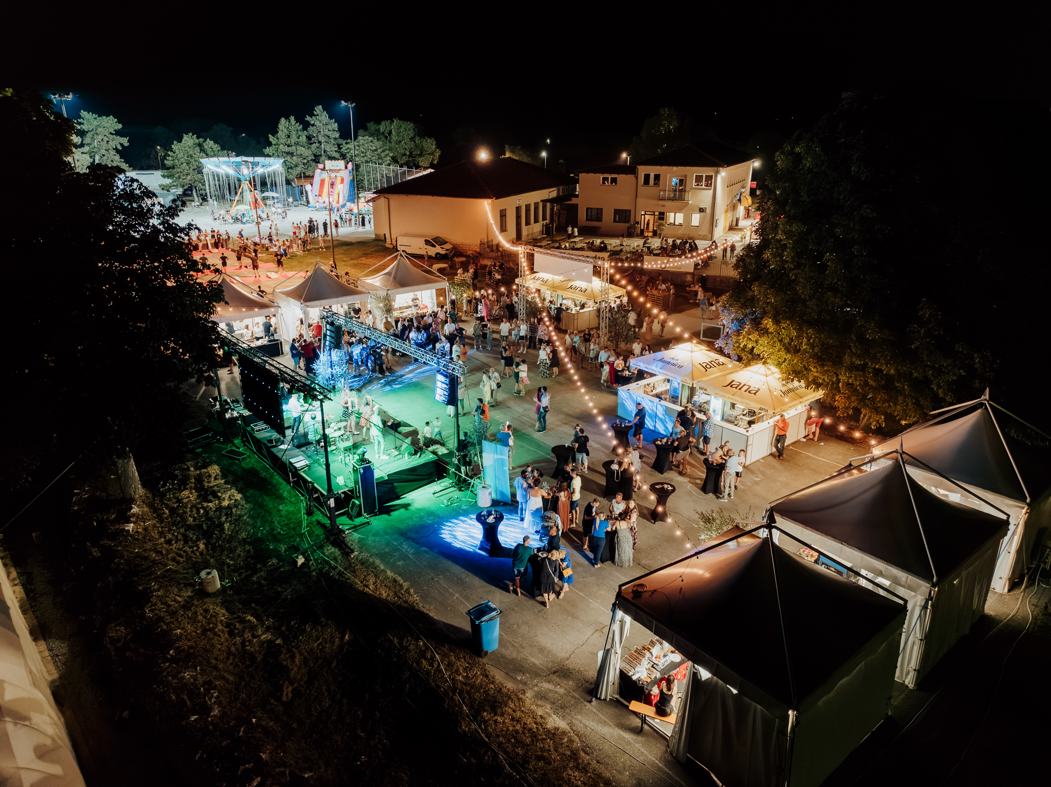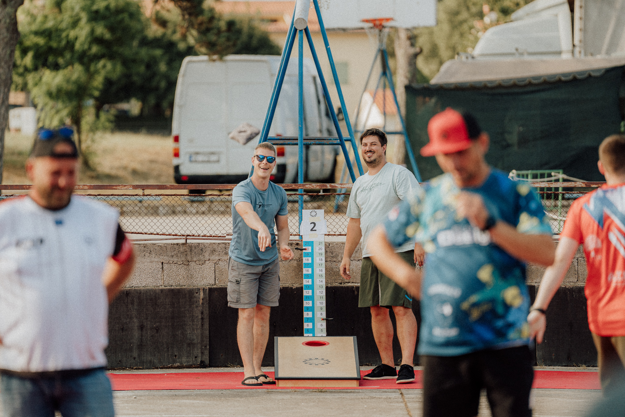 Kako je prvog dana Ljetnog festivala istarskog pršuta sunce počelo zapadati, tako se i povećavao broj posjetitelja, a svi su uživali u ležernom i spontanom druženju. Puno je posjetitelja svratilo i do boćališta gdje se odvijalo natjecanje u cornholeu.