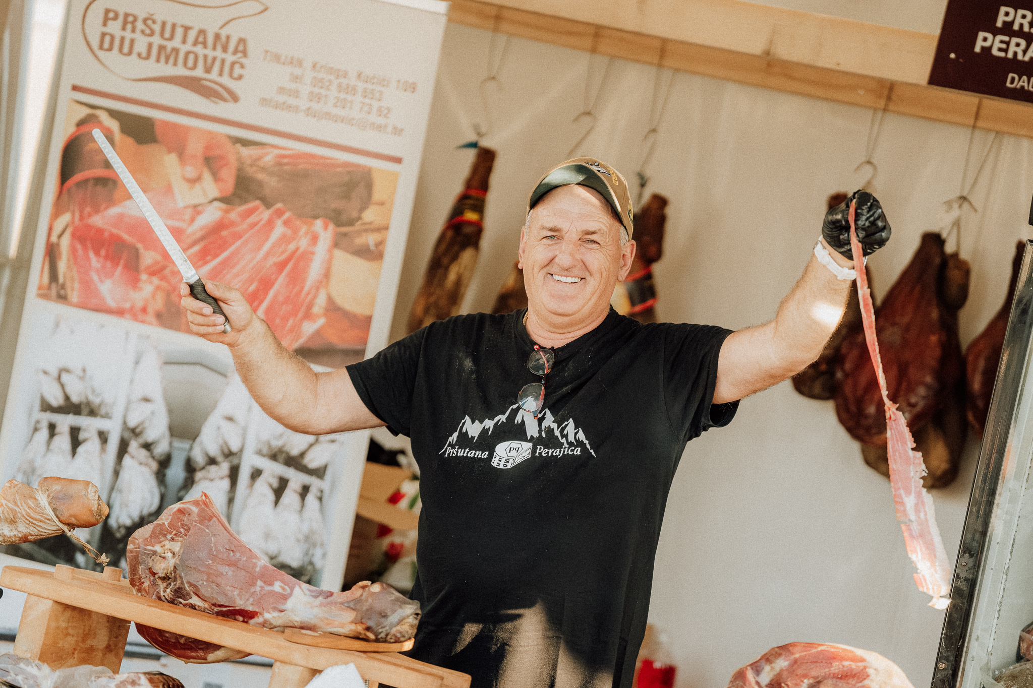 Sudeći po broju ljudi koji su kušali pršute na štandovima, čini se da je demantirana ideja kako se pršut ne jede ljeti. Dapače, izvrsno se sljubljuje sa sirom, vinom, koktelima – a poslije lijepo legne i neka slastica.