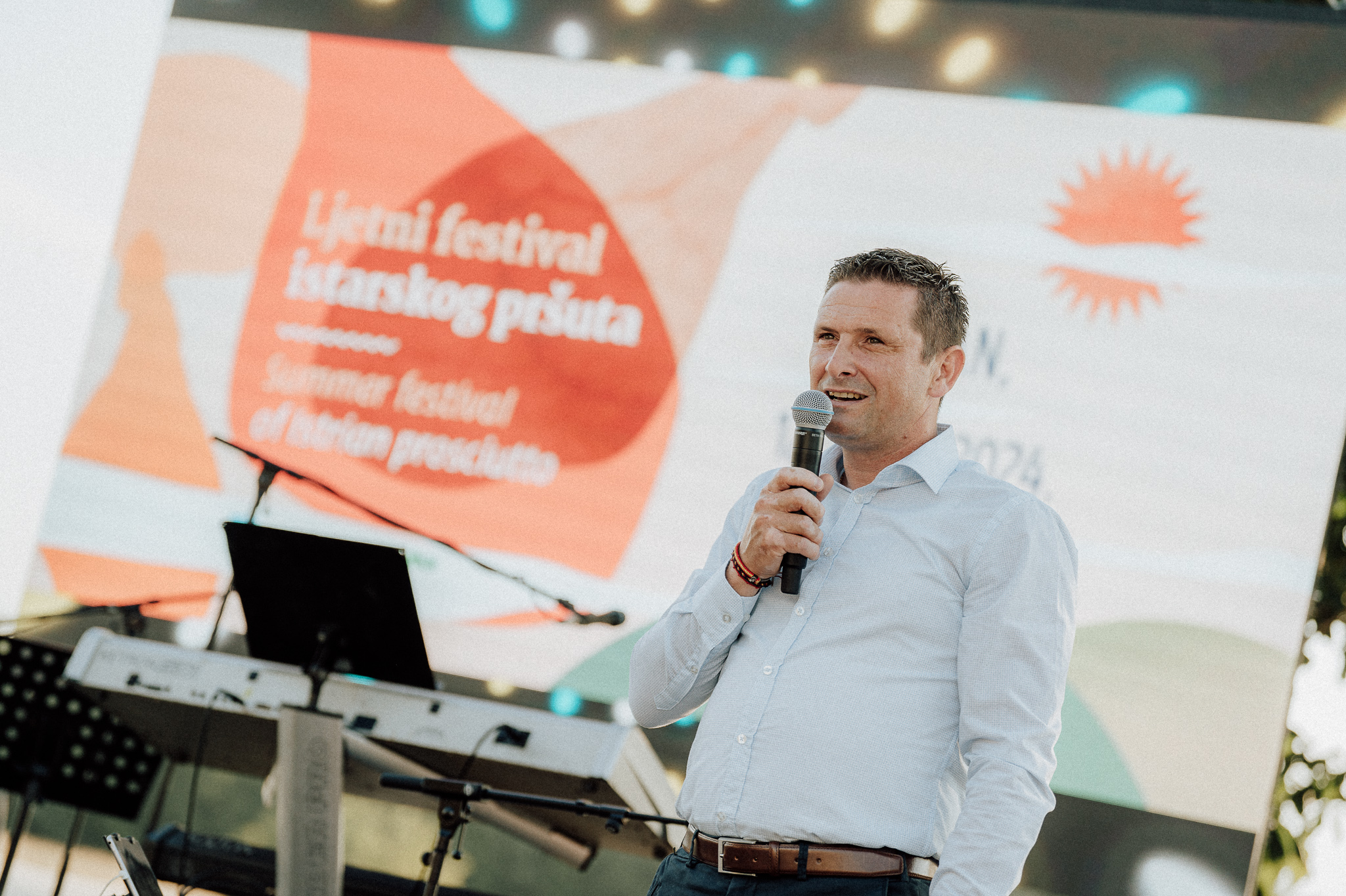Manifestacija je otvorena prilično ležerno, bez velikih govora. Načelnik Tinjana Goran Hrvatin, kazao je kako se na Ljetnom festivalu istarskog pršuta slavi perjanica istarske gastronomije, a Općina se trudi učiniti je svake godine sve boljom.