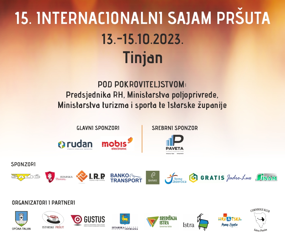 Ovog vikenda u Tinjanu kreće jubilarno 15. izdanje, od petka 13. listopada do nedjelje 15. listopada, kroz ta tri dana u Tinjanu izlaže četrdesetak proizvođača pršuta iz Hrvatske i drugih zemalja, Slovenije, Italije, Portugala, Španjolske, Austrije, te Crne Gore.