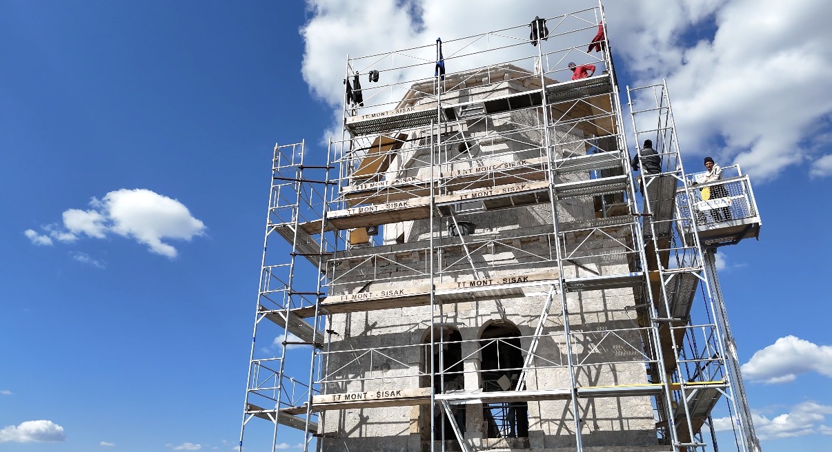 Radovi na obnovi zvonika u Tinjanu pri samom završetku prve faze
