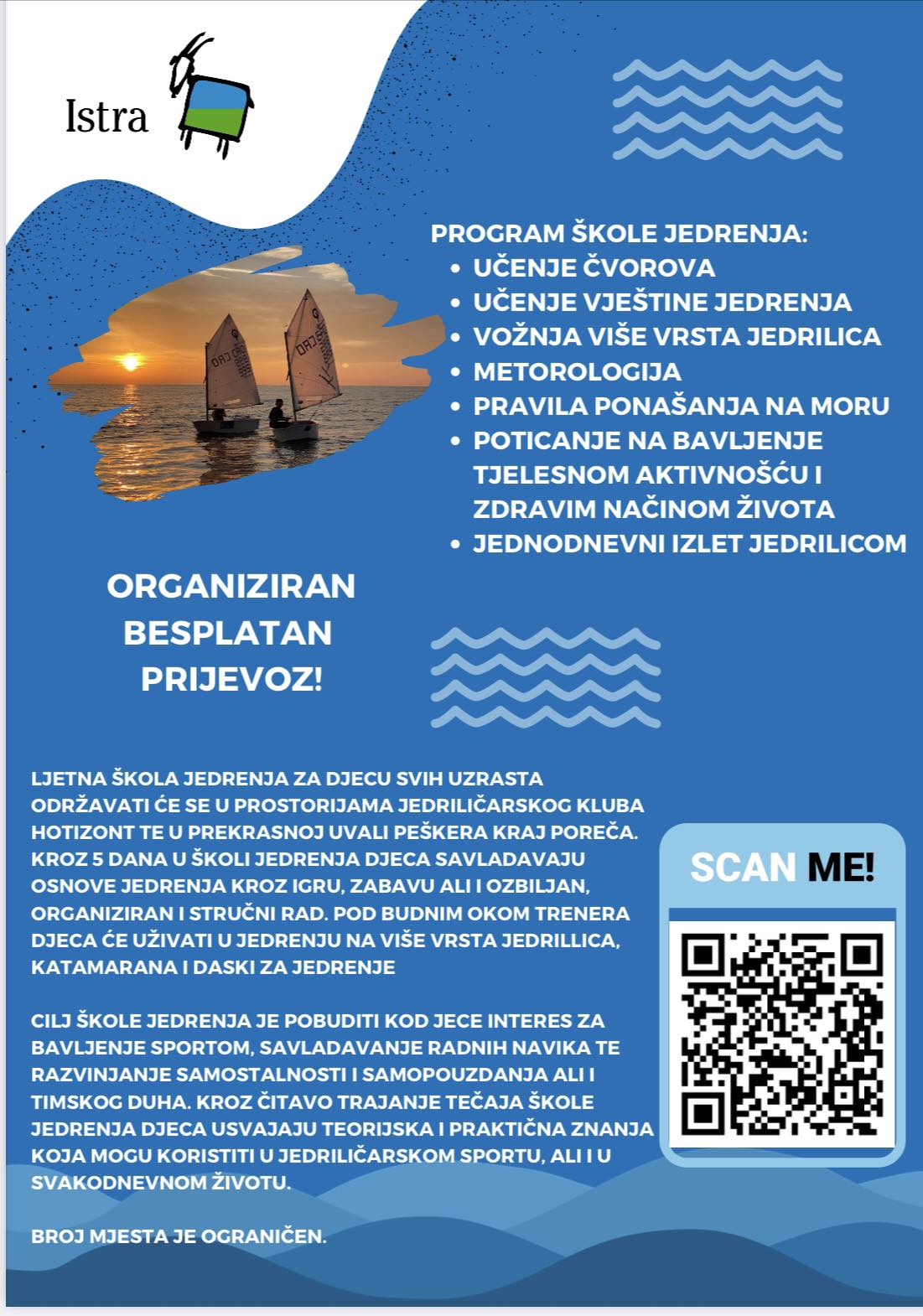 Raduje nas što možemo ponuditi sjajne mogućnosti za djecu iz Općina Tinjan i Žminj da se upuste u uzbudljiv svijet jedrenja. Škola podržava i promiče aktivno sudjelovanje djece u jedrenju kroz različite programe i aktivnosti.