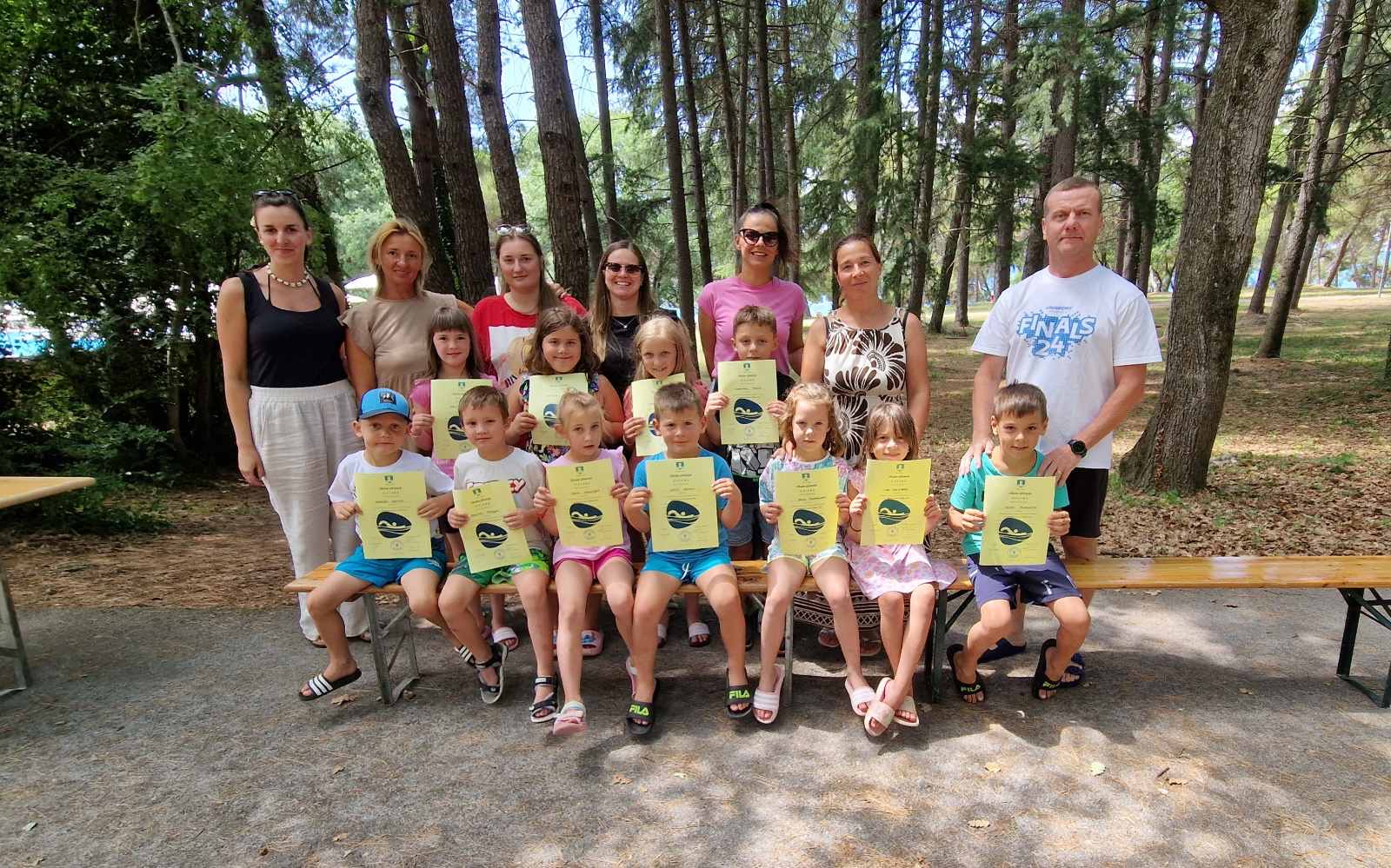 Posljedni dan ljetnog kampa bio je rezerviran za posebno druženje i prigodnu zakusku tijekom koje su se mali polaznici odlično zabavili, a za postignute plivačke uspjehe svi odreda nagrađeni su zasluženim diplomama.