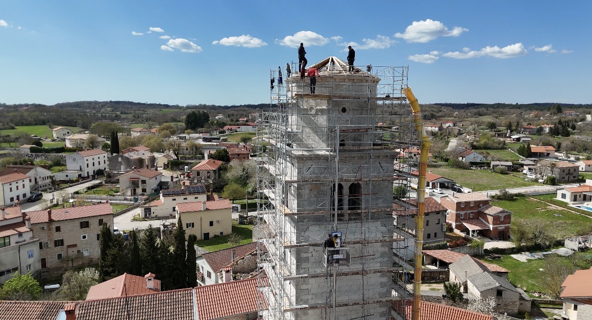 Radovi na obnovi zvonika u Tinjanu pri samom završetku prve faze